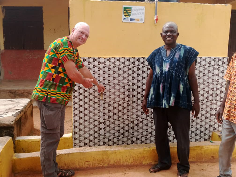 Im Oktober weilte Ralf Wilhelm zu einem Kurz-Besuch im Projektgebiet. In Damongo waren gerade Schulferien. Trotzdem wurde die Gelegenheit genutzt, unser Brunnenprojekt an die Kurabaso JHS Damongo im Beisein von Eltern, der Kommune und der Schulaufsicht offiziell zu übergeben und mit Vertretern der Schule über die zukünftige Zusammenarbeit zu sprechen.